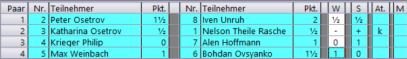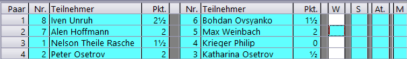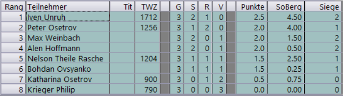 Rangliste (nach der 2 Runde)