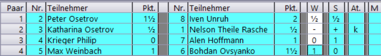 Paarungen der 4 Runde am 18.02.2026