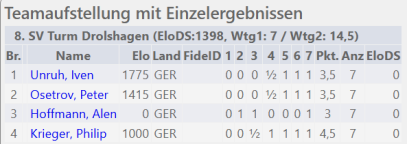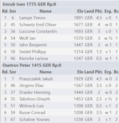 Trotzdem wurde es dem U16 Team gelungen, sich zusammen zu reißen und nach dem Remis in der 4 Runde folgte die Siegserie der letzten 3 Runden. Leider fehlte ein Manschaftspunkt (wie auch vor 2 Jahren in der U14 Gruppe), um die Qualifikation für NRW zu erreichen.
