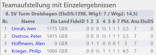 Am 18.04.2026 fand ein Qualifikationsturnier un Klassen U12(w) - U16(w) in Oer-Erckenschwick statt. Den Drolshagener Schachverein wurde in der Gruppe U16 von vier Jugendspielern sehr gut präsentiert: